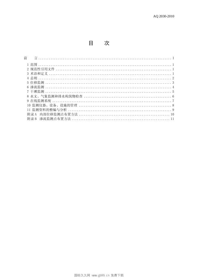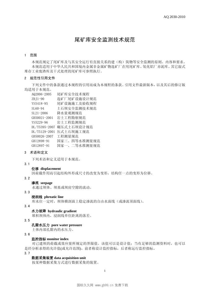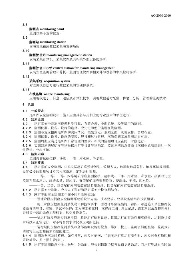 AQ/T 2030-2010 尾矿库安全监测技术规范
