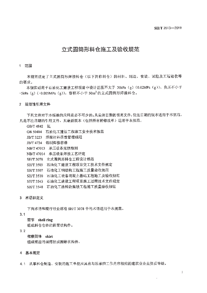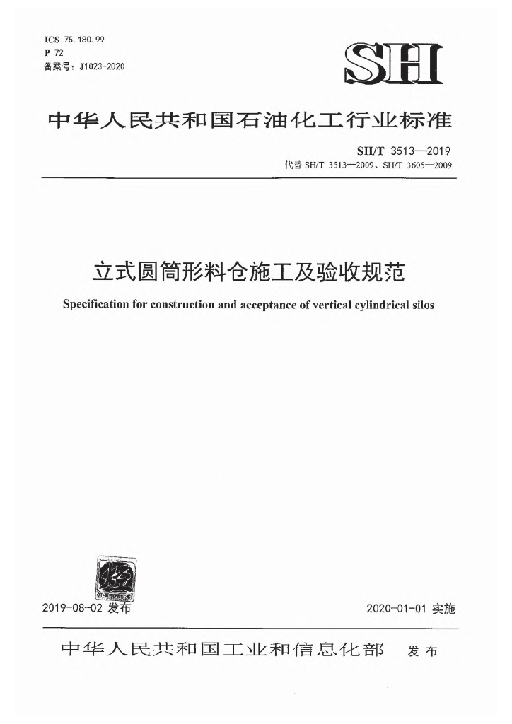 SH/T 3513-2019 立式圆筒形料仓施工及验收规范
