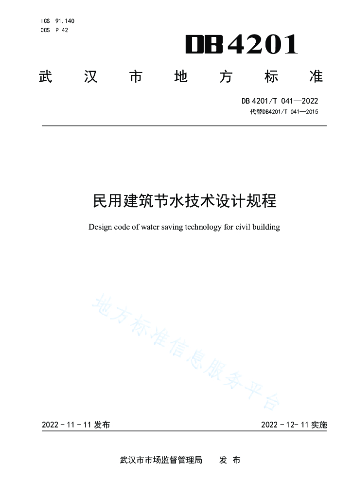 中信建筑设计研究总院有限公司、武汉市计划用水节约用水办公室、武汉市建设工程设计审查和消防验收中心