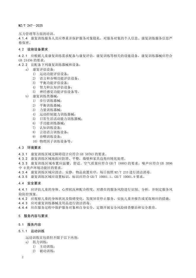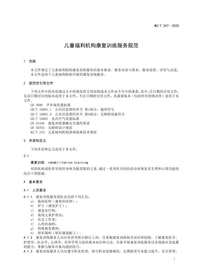 MZ/T 247-2025 儿童福利机构康复训练服务规范