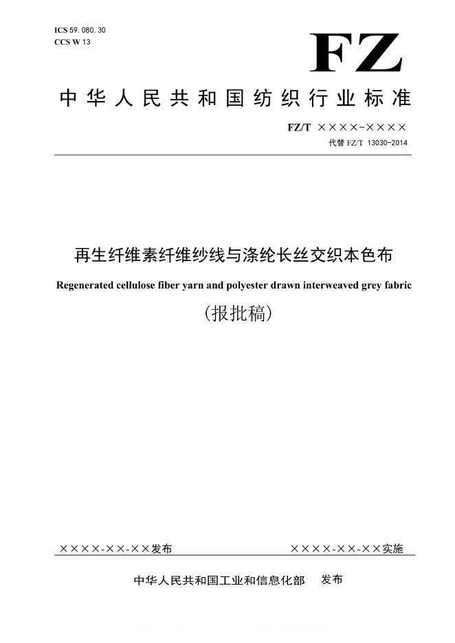FZ/T 13030-2023 再生纤维素纤维纱线与涤纶长丝交织本色布
