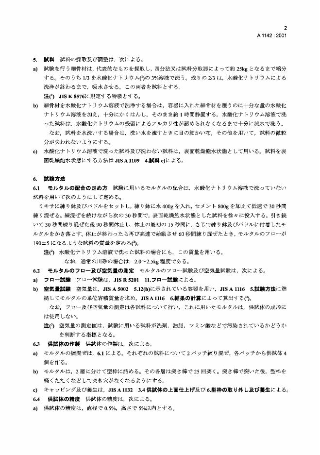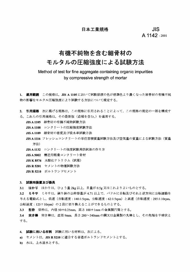 JIS A1142-2001 用灰浆抗压强度测定细集料中有机杂质含量的试验方法