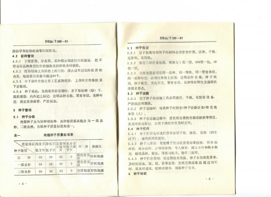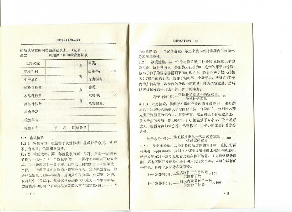 DB36/T 109-1991 烤烟良种繁育技术规程