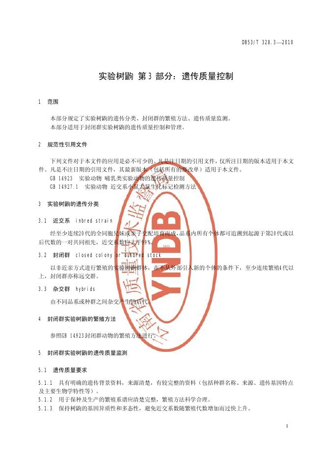 DB53/T 328.3-2010 实验树鼩 第3部分:遗传质量控制