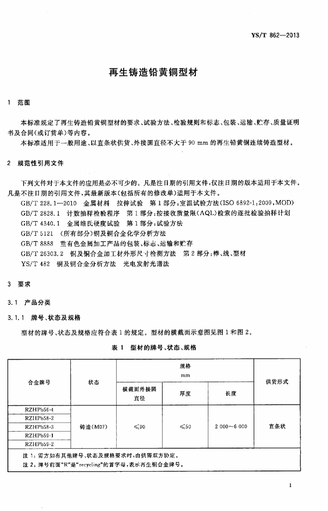 YS/T 862-2013 再生铸造铅黄铜型材