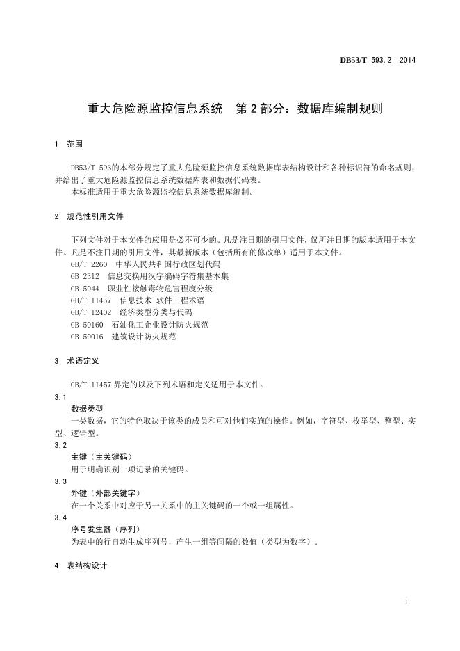 DB53/T 593.2-2014 重大危险源监控信息系统 第2部分:数据库编制规则