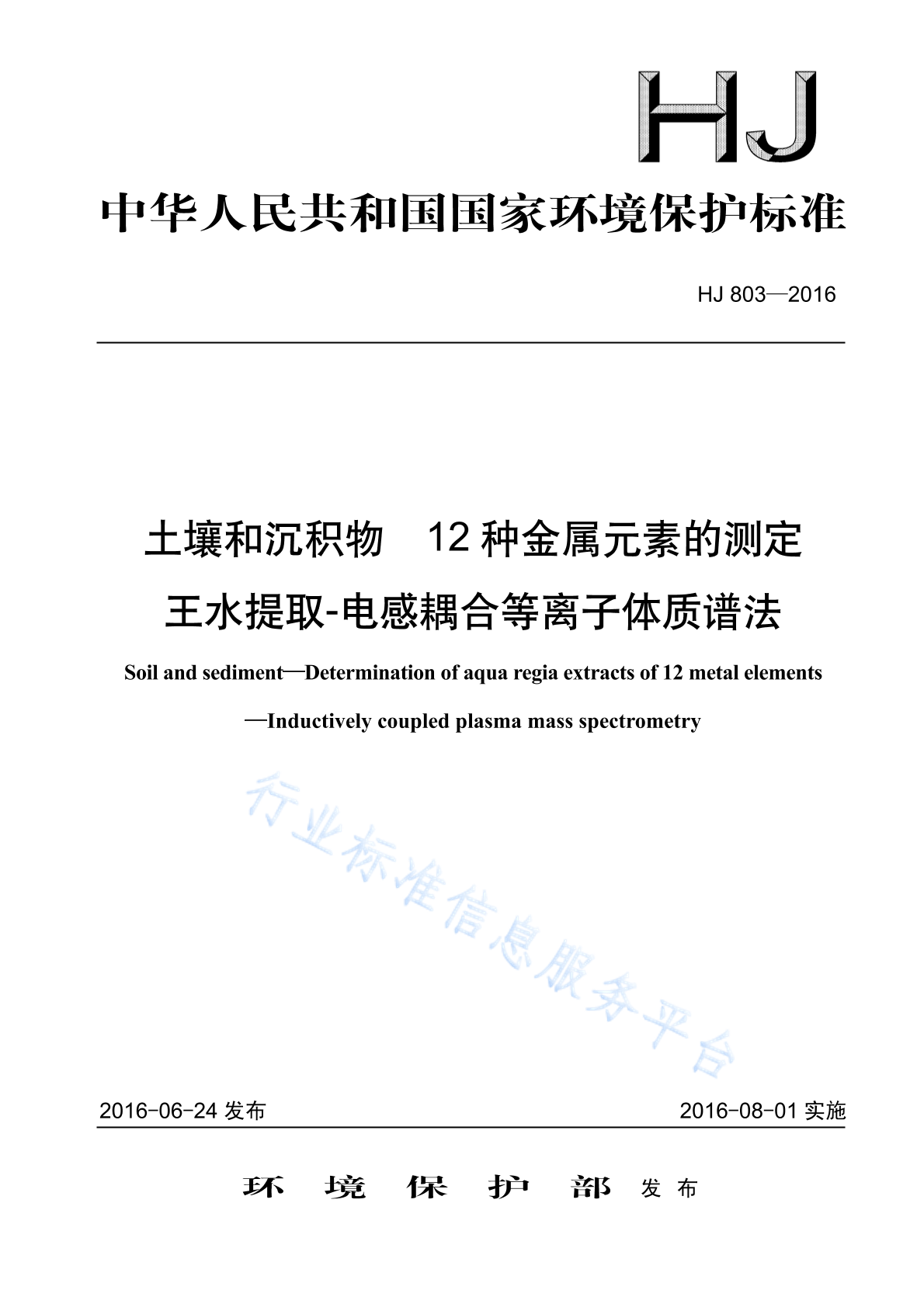 HJ 803-2016 土壤和沉积物 12种金属元素的测定 王水提取-电感耦合等离子体质谱法