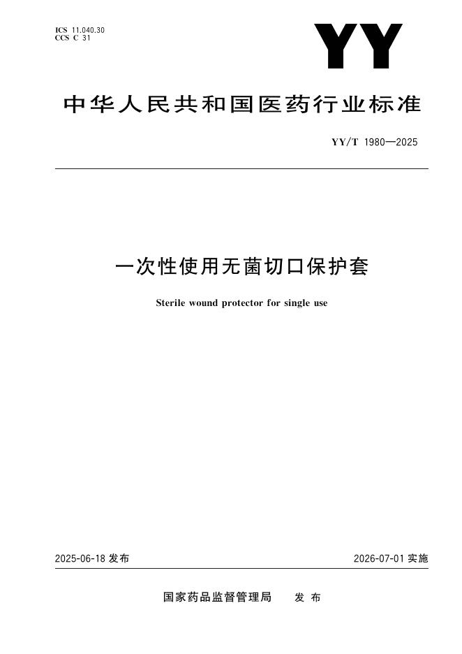 YY/T 1980-2025 一次性使用无菌切口保护套