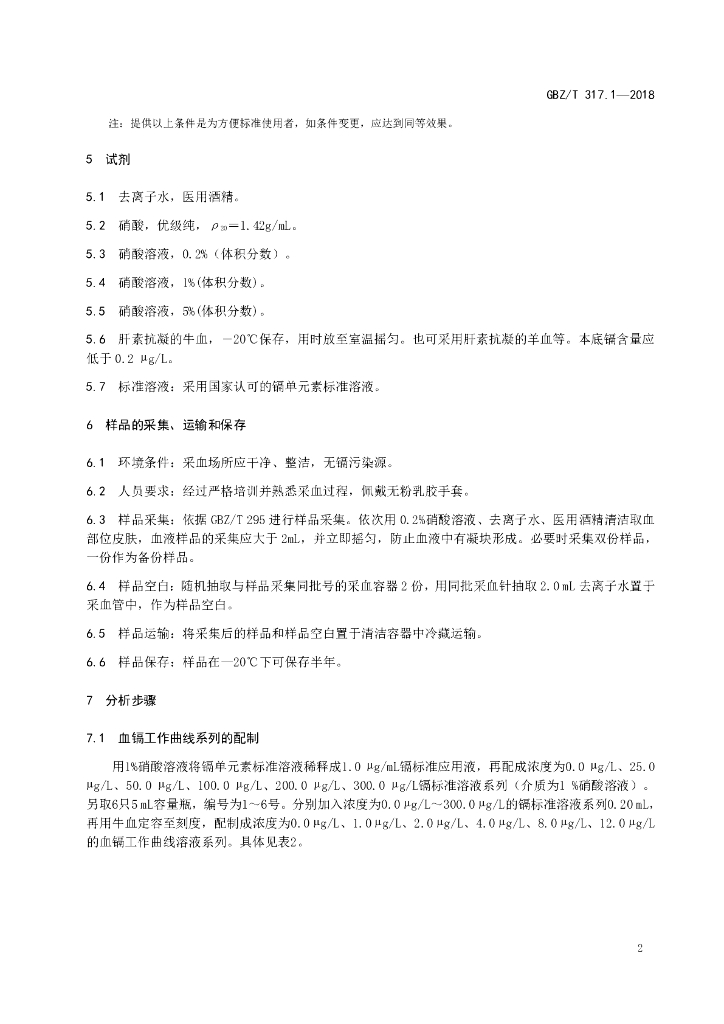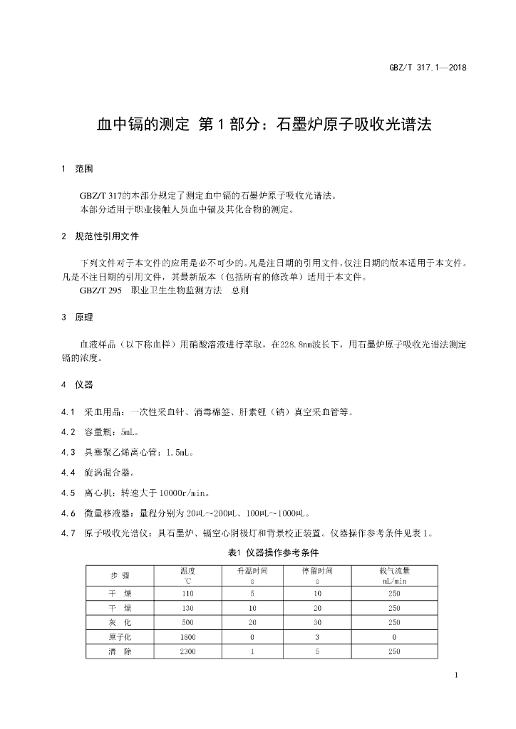 GBZ/T 317.1-2018 血中镉的测定 第1部分:石墨炉原子吸收光谱法 (代替 WS/T 34-1996)