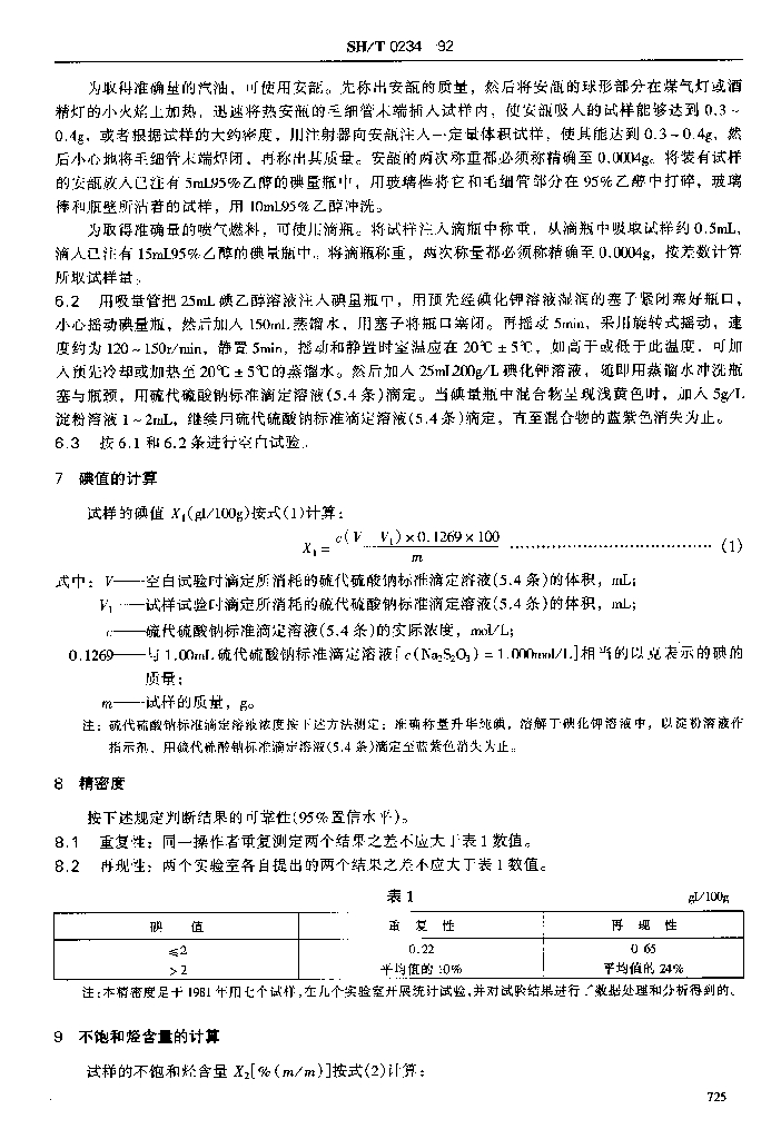 SH/T 0234-1992 轻质石油产品碘值和不饱和烃含量测定法