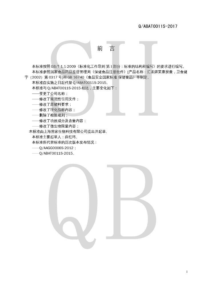 Q/ABAT 0011S-2017 汇圣牌莱康胶囊