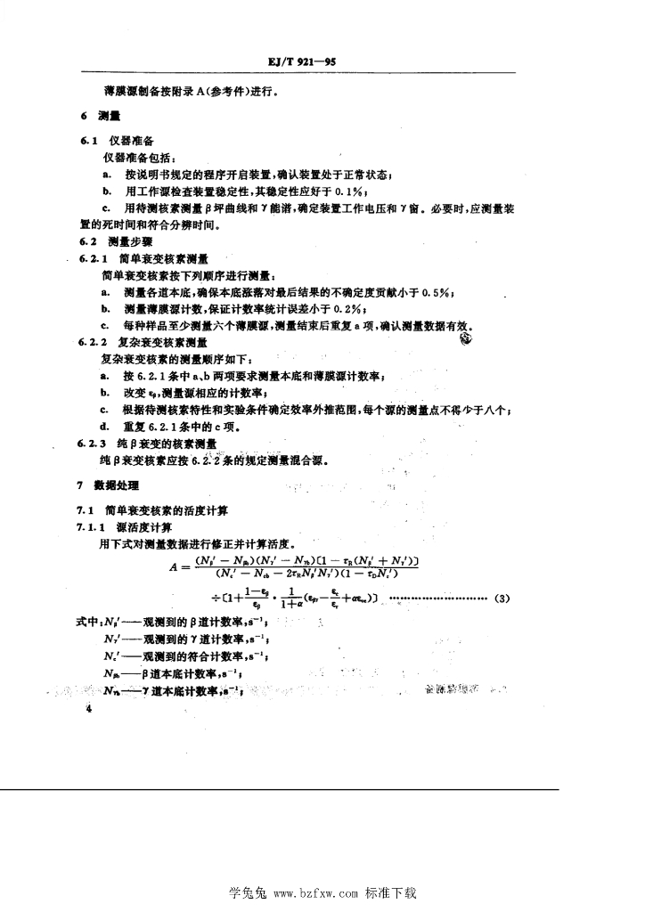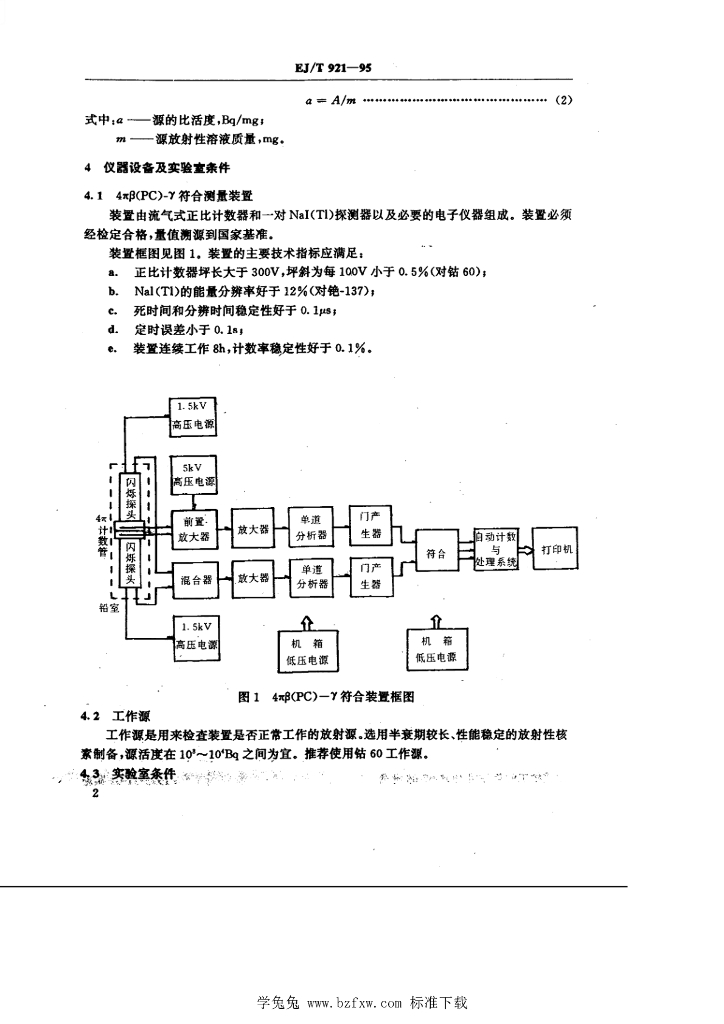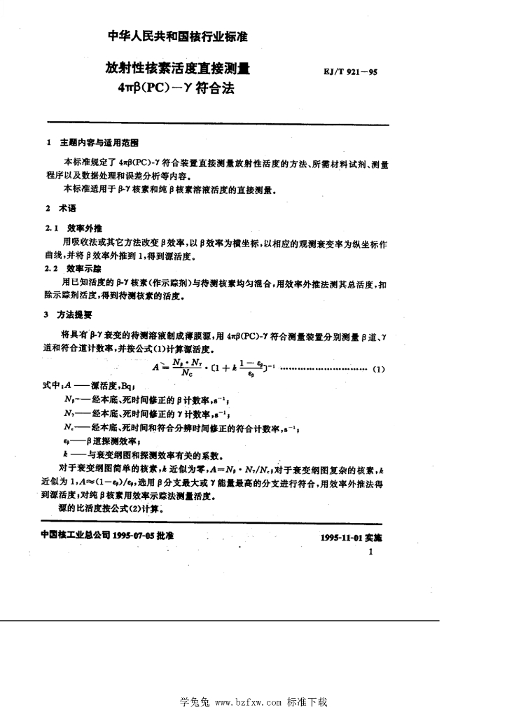 EJ/T 921-1995 放射性核素比活度直接测量 4πB(PC)━γ符合法
