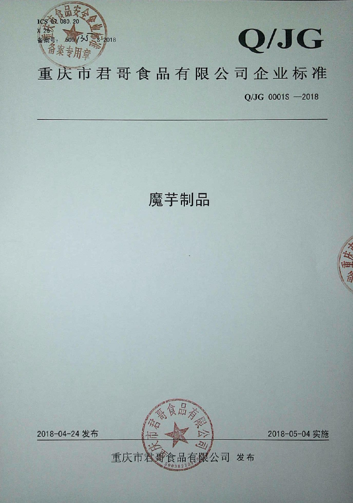 Q/JG 0001S-2018 魔芋制品