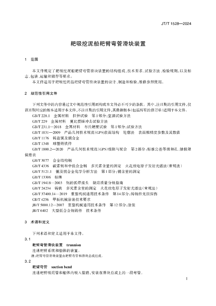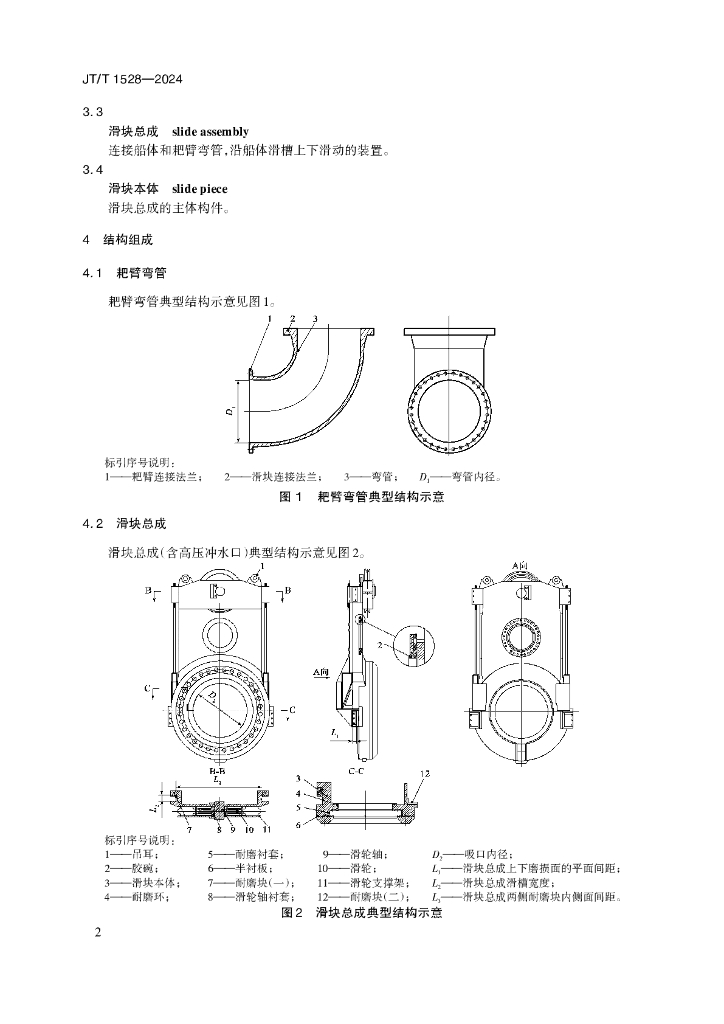 JT/T 1528-2024 耙吸挖泥船耙臂弯管滑块装置