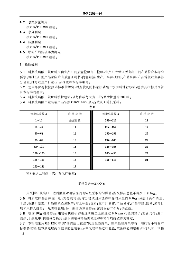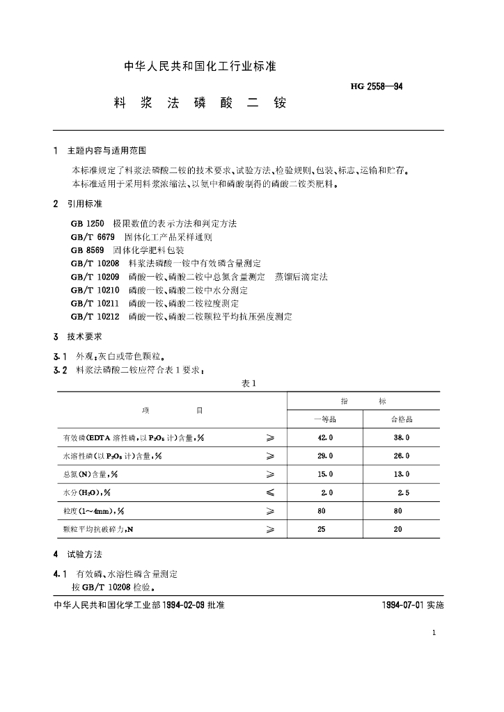 HG 2558-1994 料浆法磷酸二铵