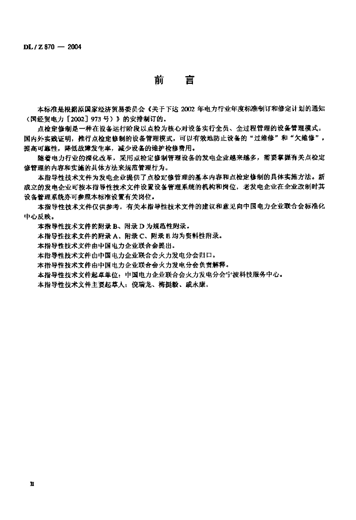 DL/Z 870-2004 火力发电企业设备点检定修管理导则