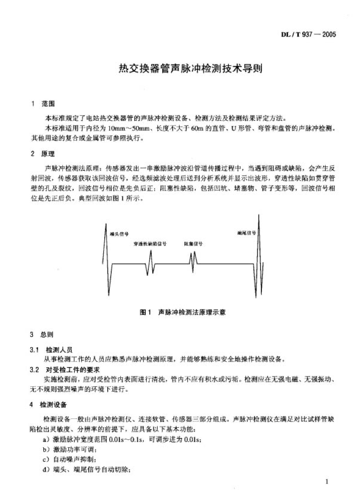 DL/T 937-2005 热交换器管声脉冲检测技术导则