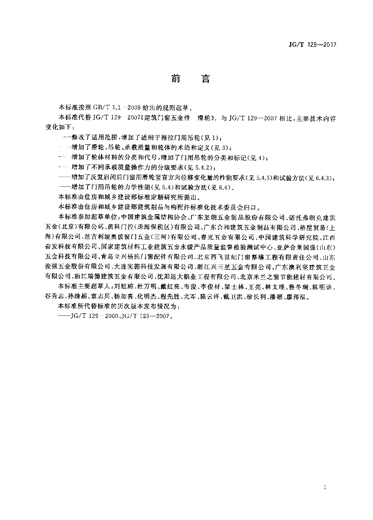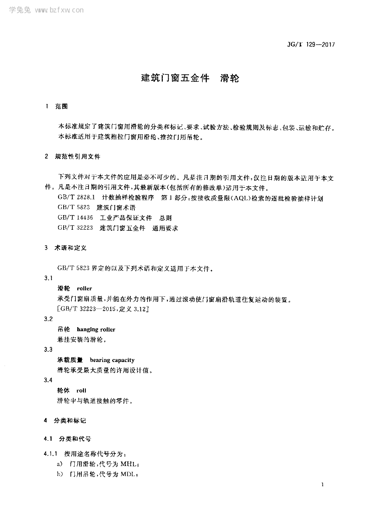JG/T 129-2017 建筑门窗五金件 滑轮