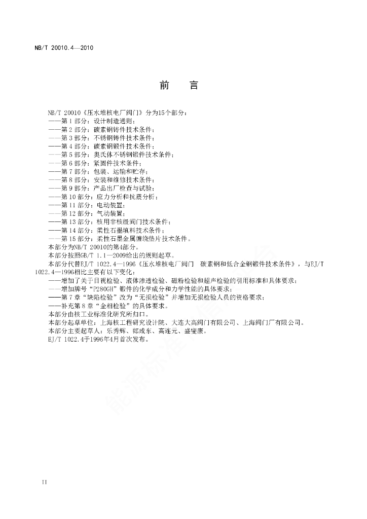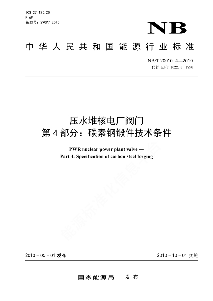 NB/T 20010.4-2010 压水堆核电厂阀门 第4部分:碳素钢锻件技术条件