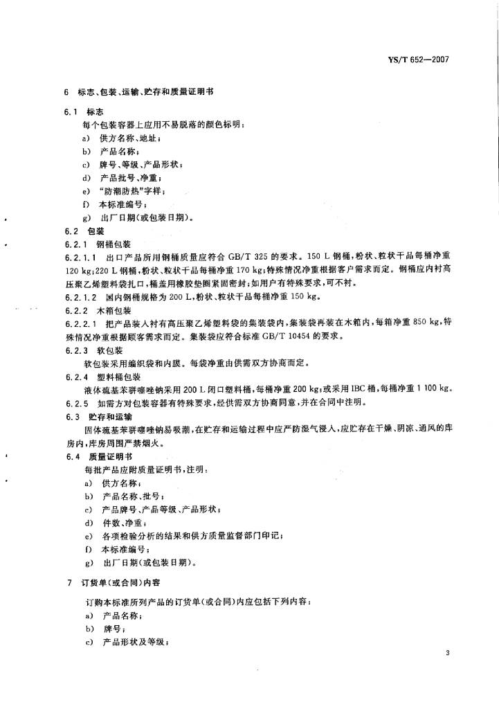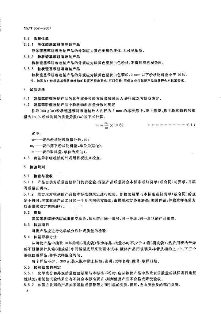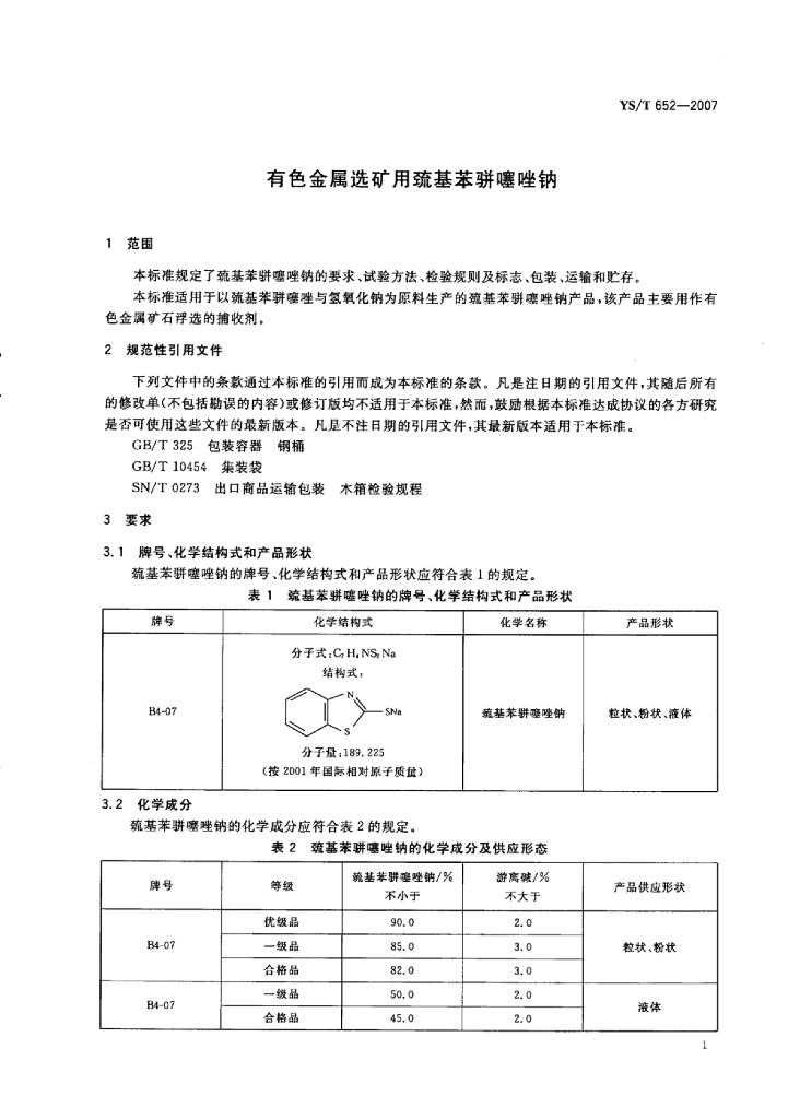 YS/T 652-2007 有色金属选矿用巯基苯骈噻唑钠