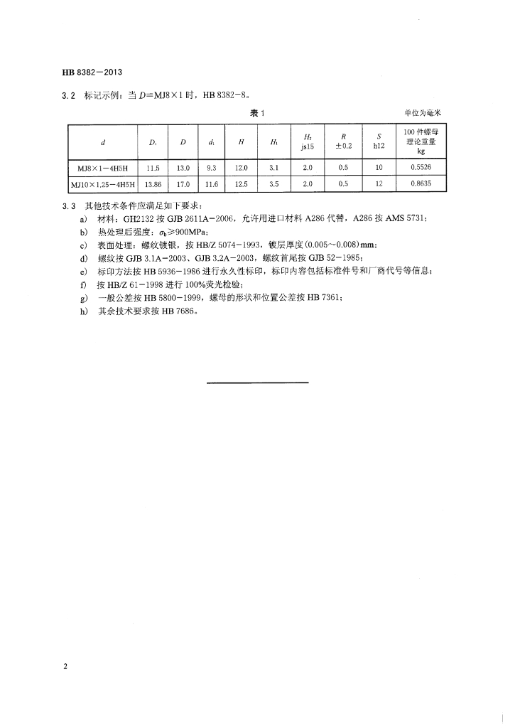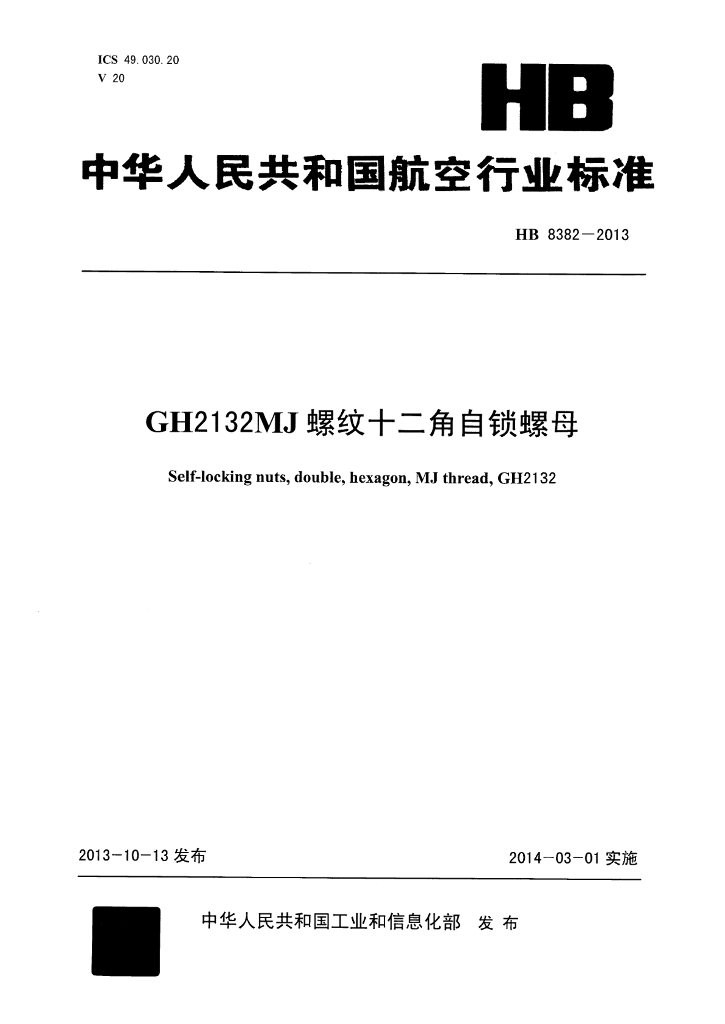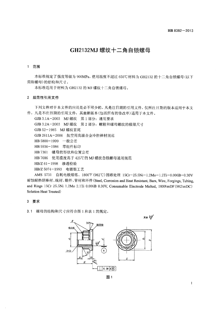 HB 8382-2013 GH2132 MJ螺纹十二角自锁螺母