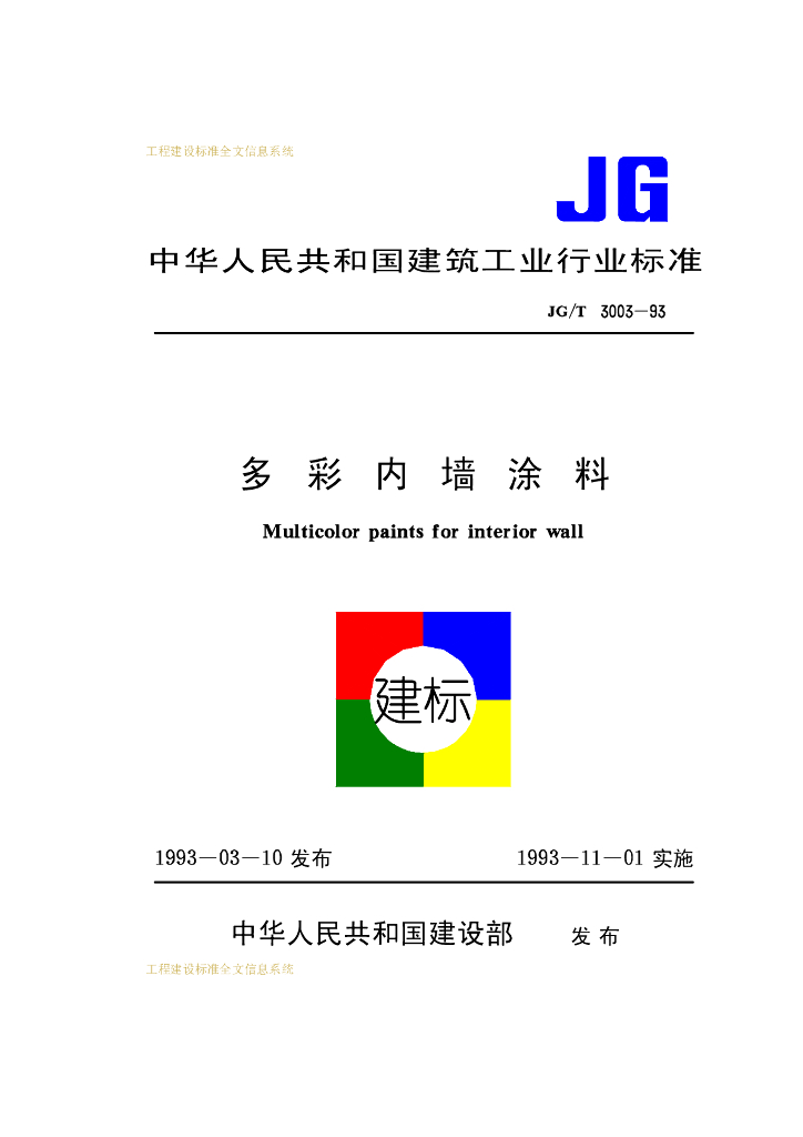 JG/T 3003-1993 多彩内墙涂料