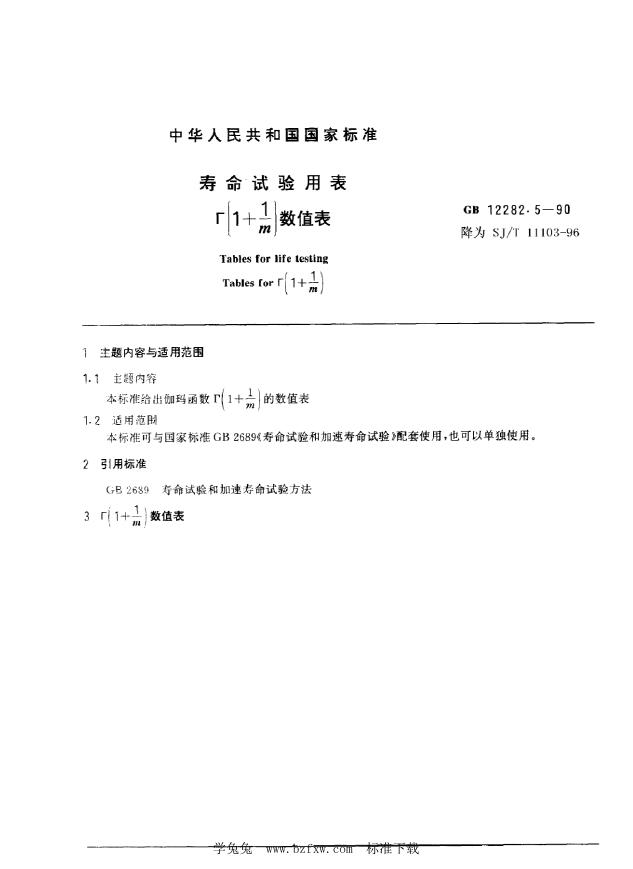 SJ/T 11103-1996 寿命试验用表Г(1+1M)数值表