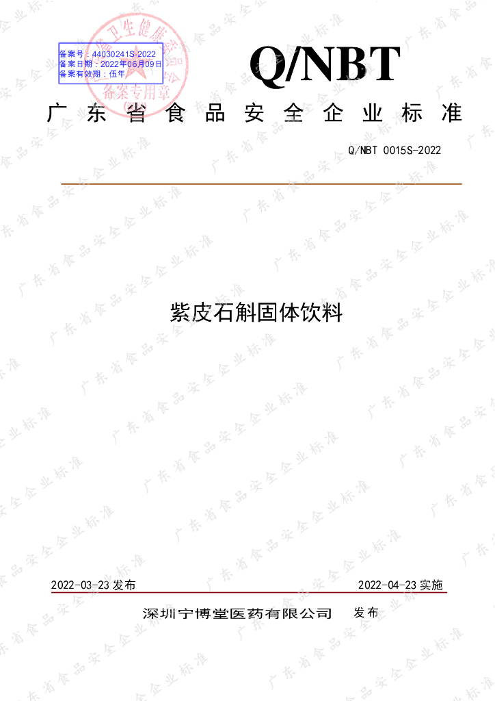 Q/NBT 0015S-2022 紫皮石斛固体饮料