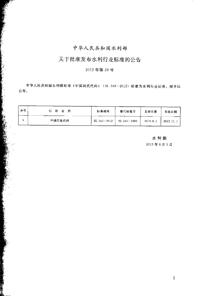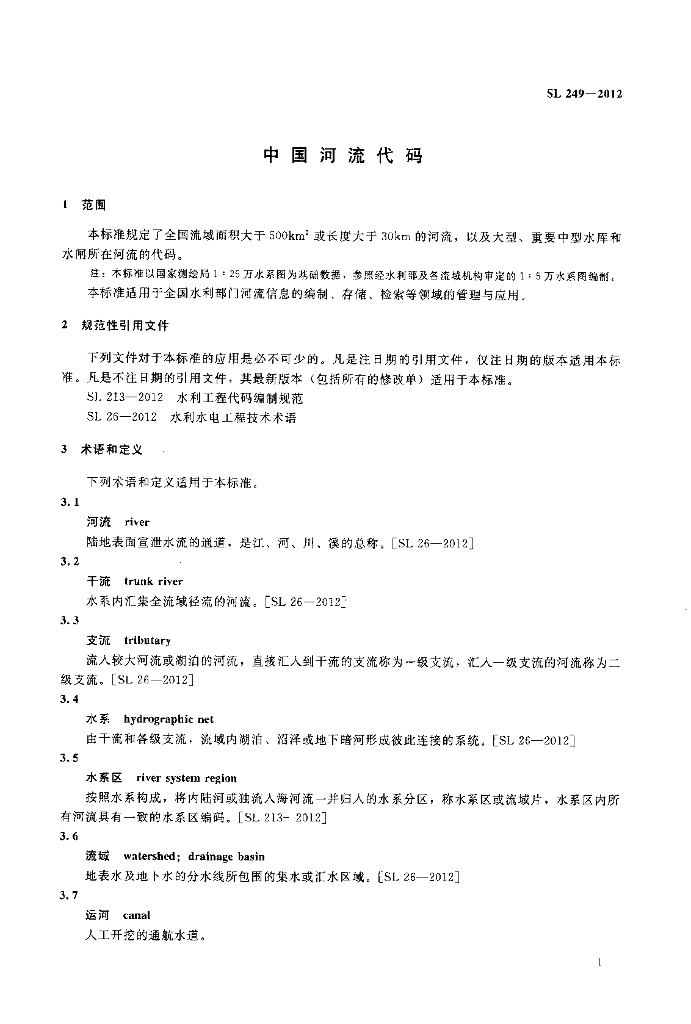 SL 249-2012 中国河流代码