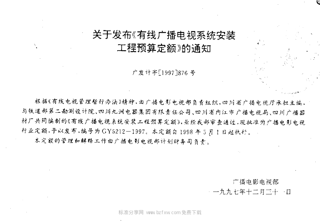 GY 5212-1997 有线广播电视系统安装工程预算定额