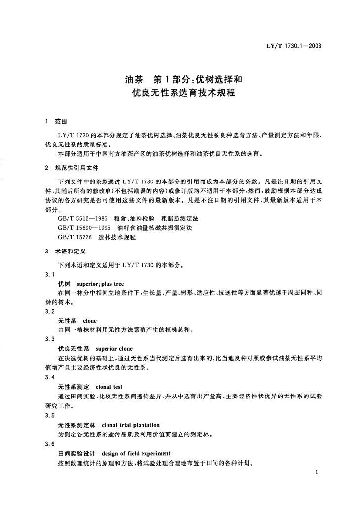 LY/T 1730.1-2008 油茶 第1部分:优树选择和优良无性系选育技术规程