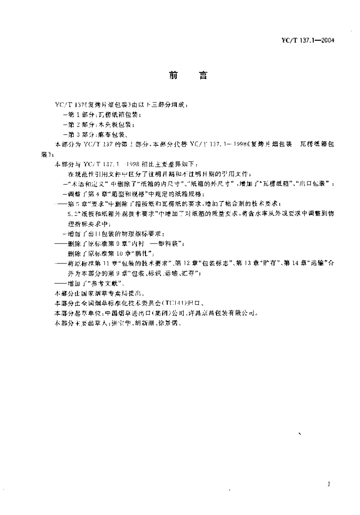 YC/T 137.1-2004 复烤片烟包装 瓦楞纸箱包装