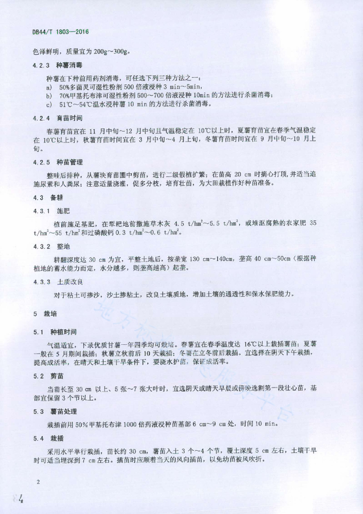 DB44/T 1803-2016 下录甘薯生产技术规程