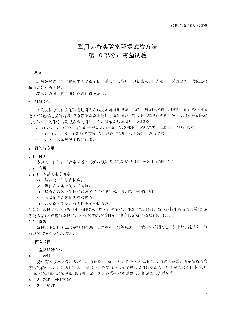GJB 150.10A-2009 军用装备实验室环境试验方法 第10部分:霉菌试验