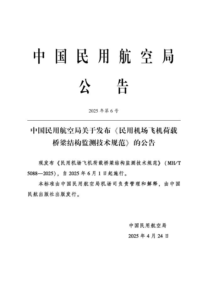 MH/T 5088-2025 民用机场飞机荷载桥梁结构监测技术规范