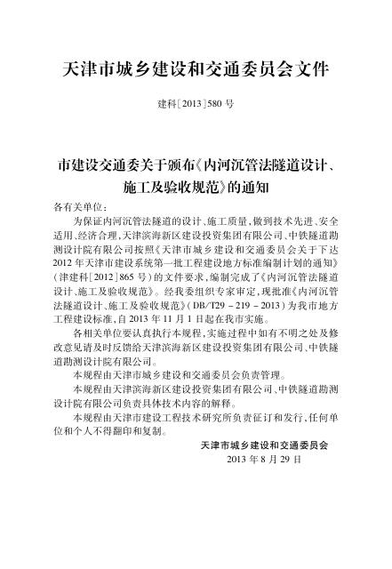 DB/T 29-219-2013 内河沉管法隧道设计、施工及验收规范(附条文说明)