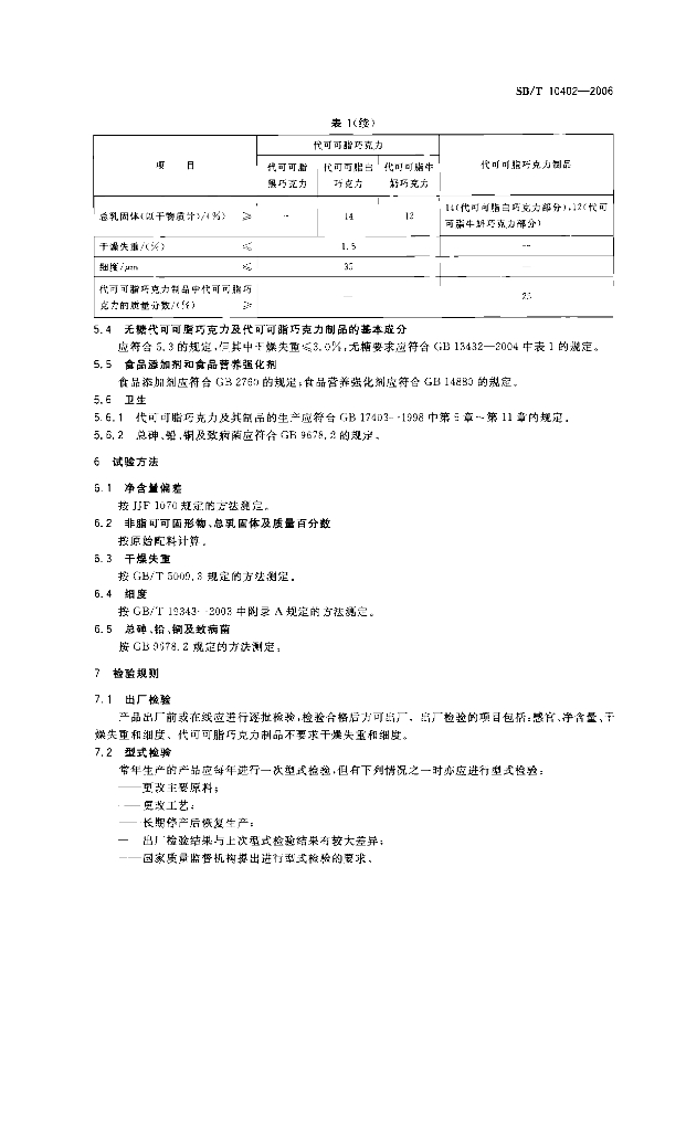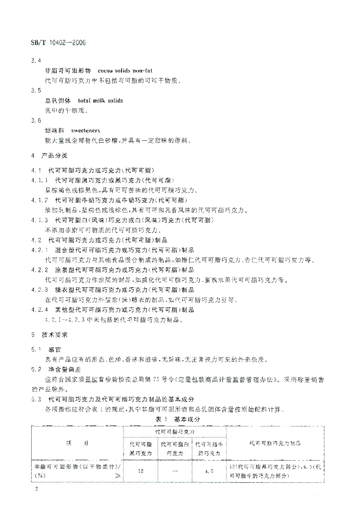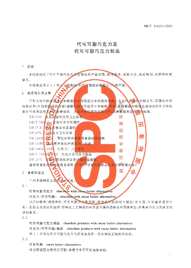 SB/T 10402-2006 代可可脂巧克力及代可可脂巧克力制品