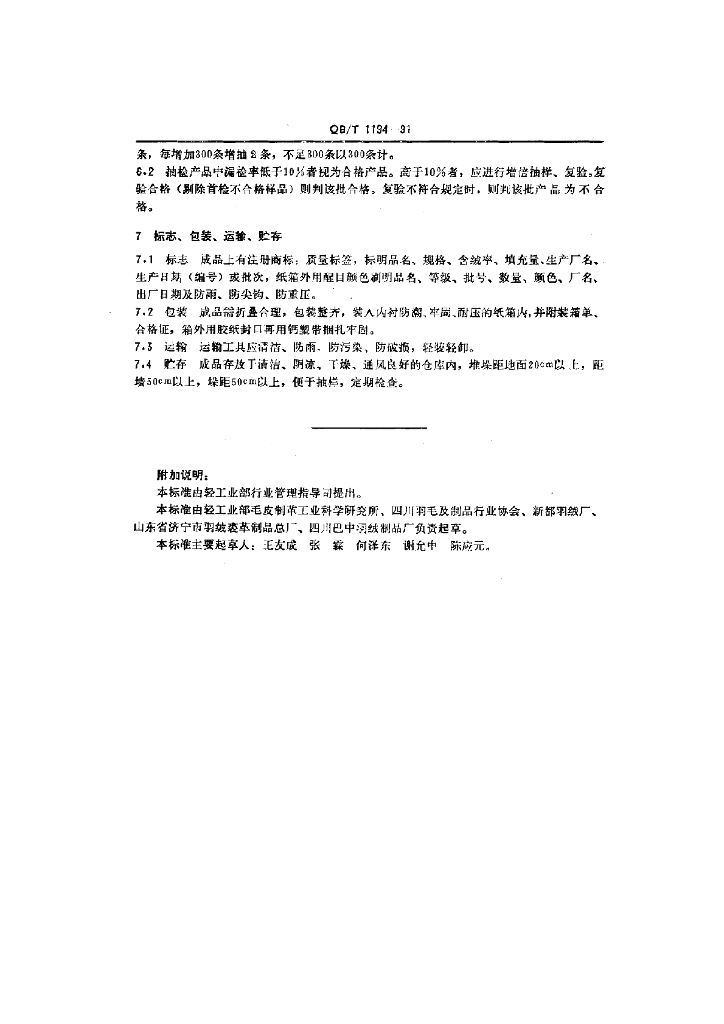 QB/T 1194-1991 羽绒睡垫