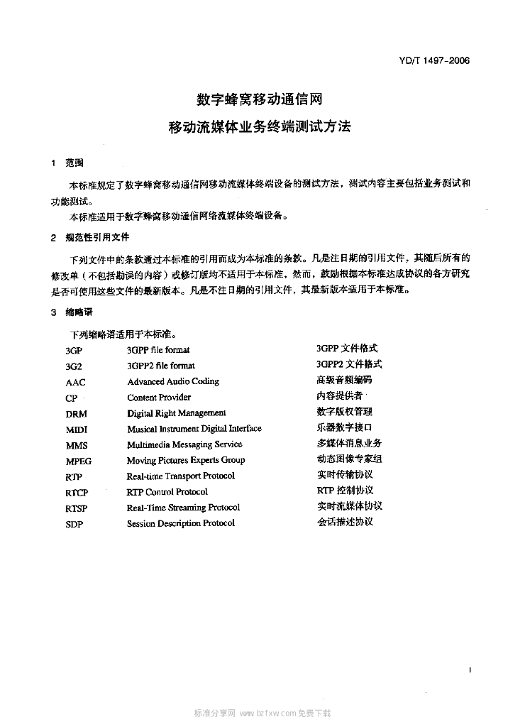 YD/T 1497-2006 数字蜂窝移动通信网移动流媒体业务终端测试方法