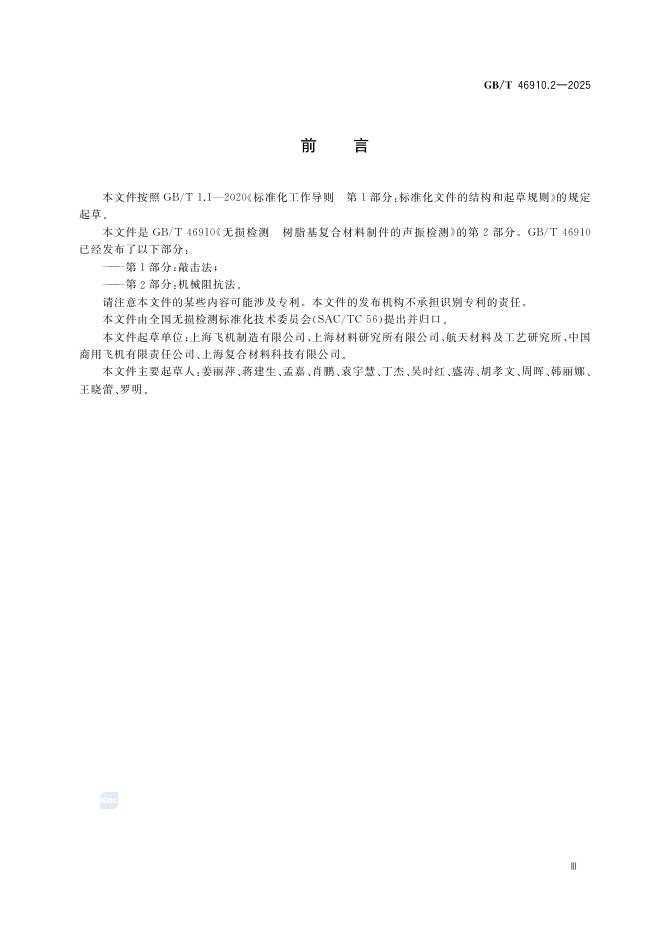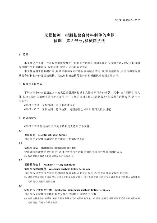 GB/T 46910.2-2025 无损检测 树脂基复合材料制件的声振检测 第2部分:机械阻抗法