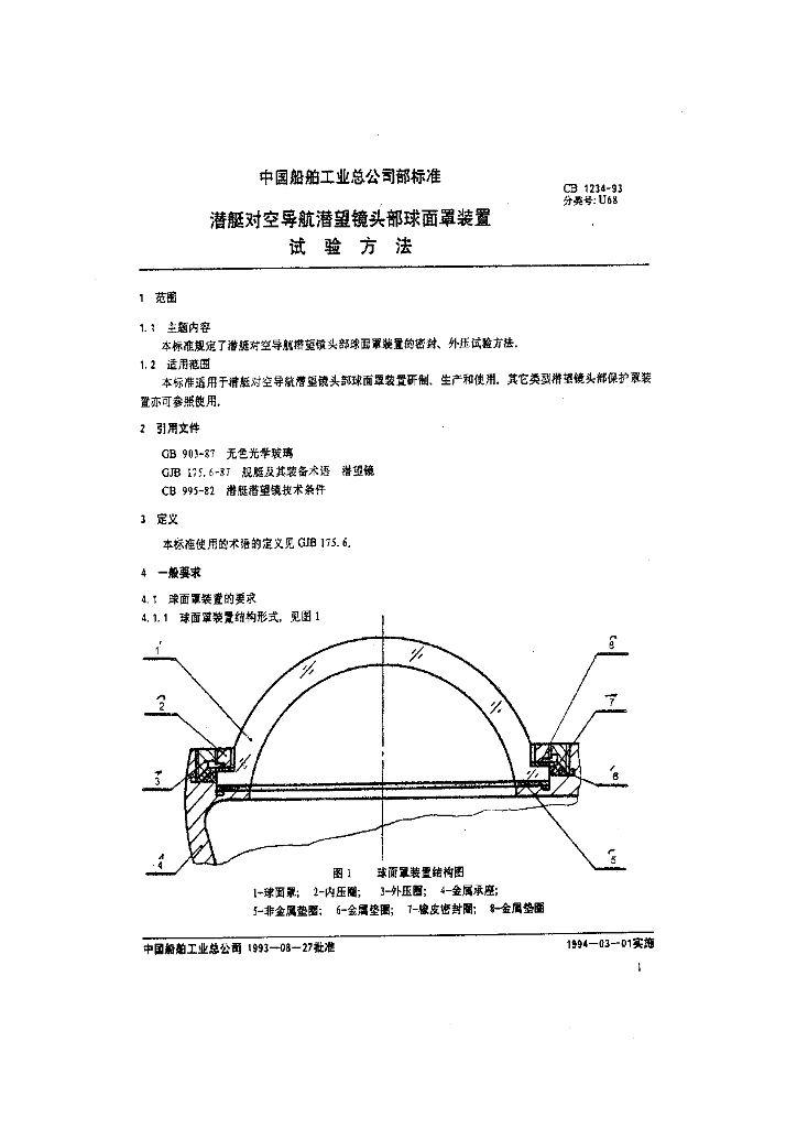 CB 1234-1993 潜艇对空导航潜望镜头部球面罩装置试验方法