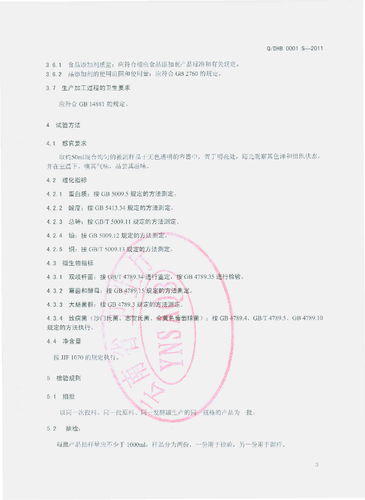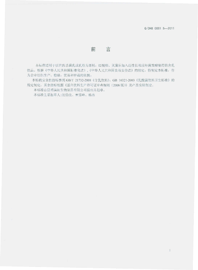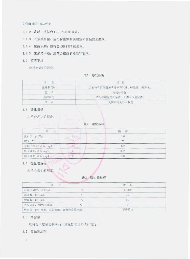 Q/DHB 0001S-2011 加加宁双歧杆菌含乳饮品