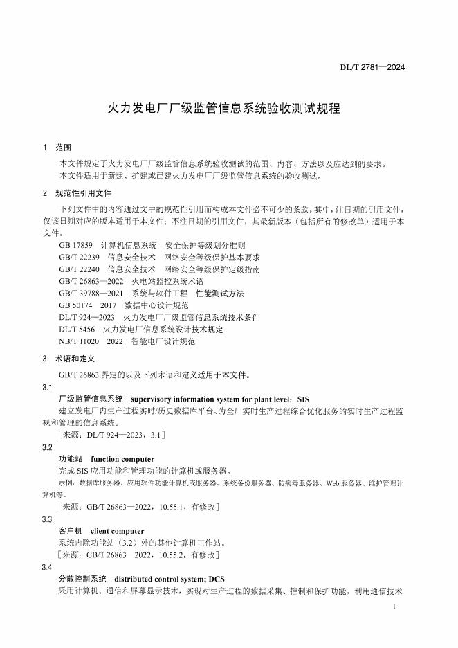 DL/T 2781-2024 火力发电厂厂级监管信息系统验收测试规程