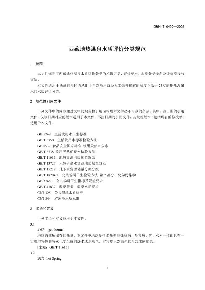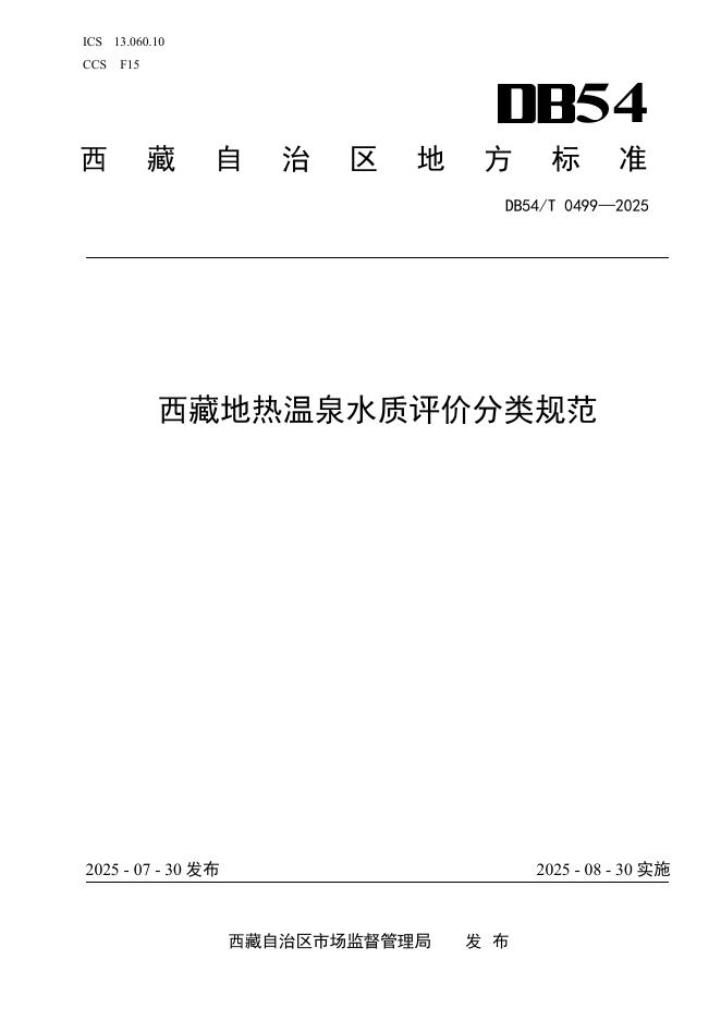 DB54/T 0499-2025 西藏地热温泉水质评价分类规范