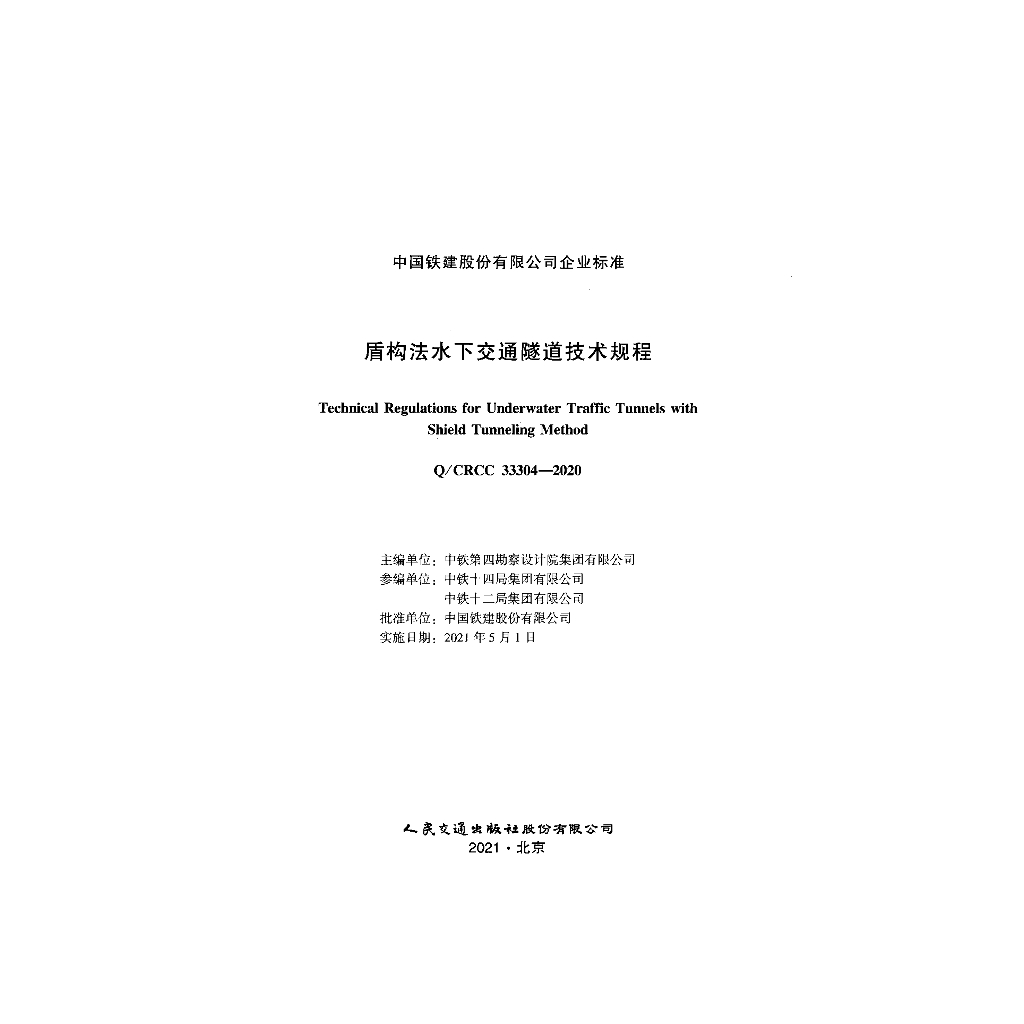 Q/CRCC 33304-2020 盾构法水下交通隧道技术规程