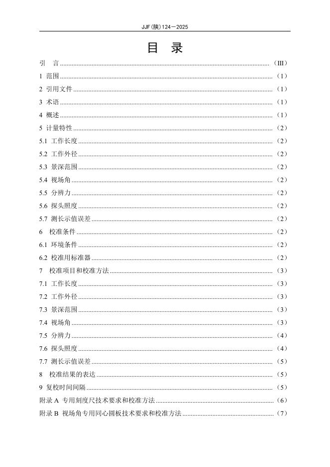 JJF(陕)124-2025 工业内窥镜校准规范