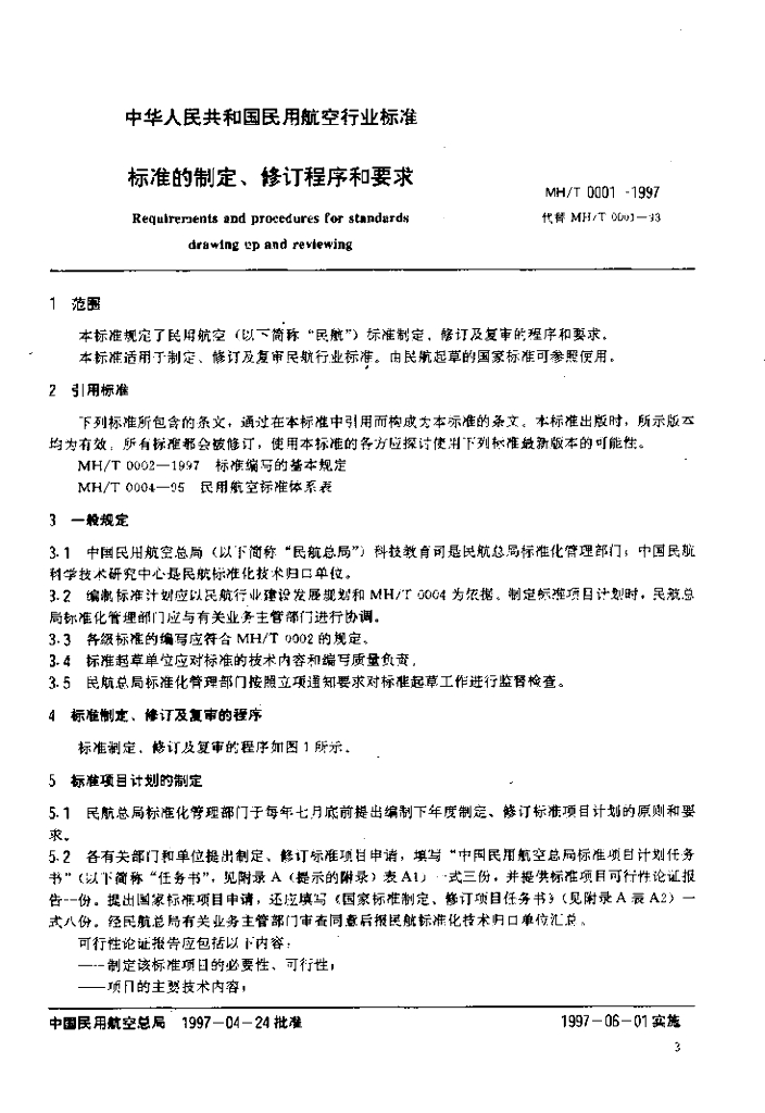 MH/T 0001-1997 标准的制定、修订程序和要求