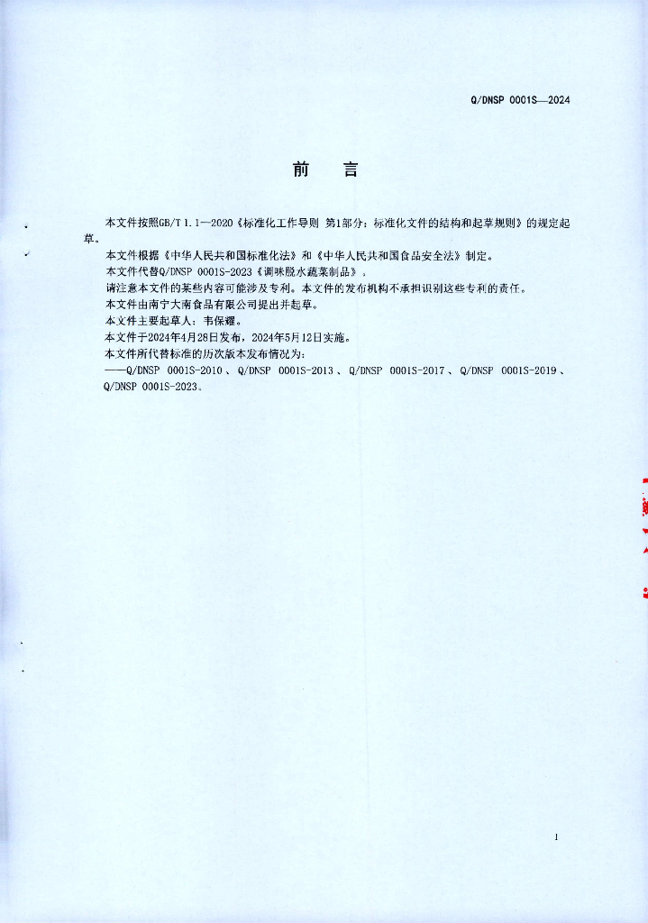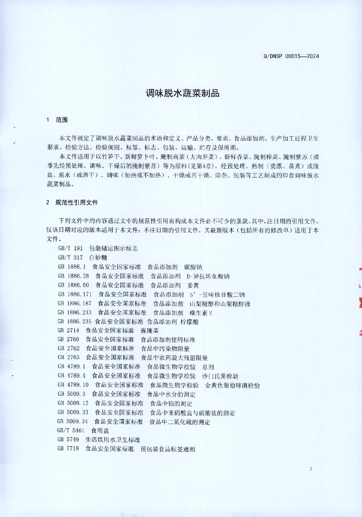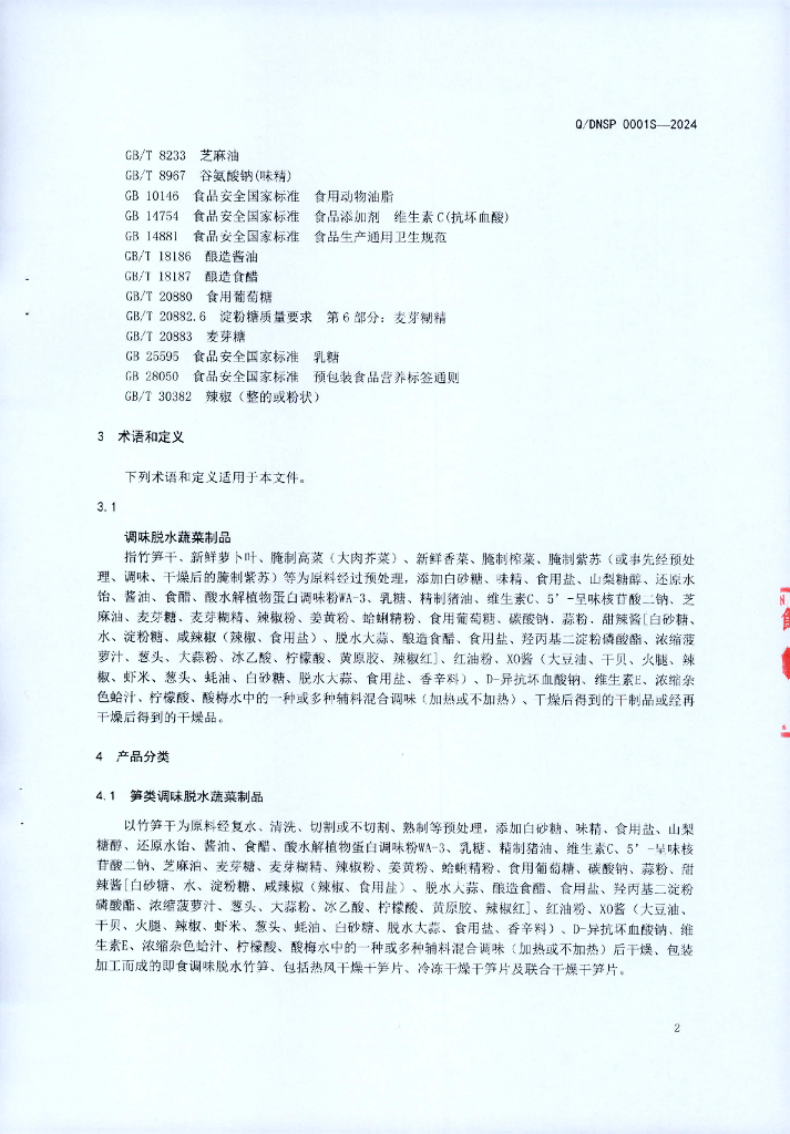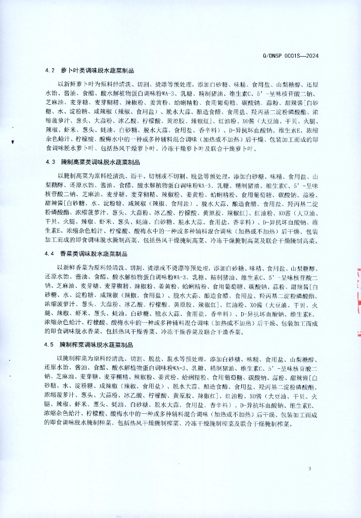 Q/DNSP 0001S-2024 调味脱水蔬菜制品