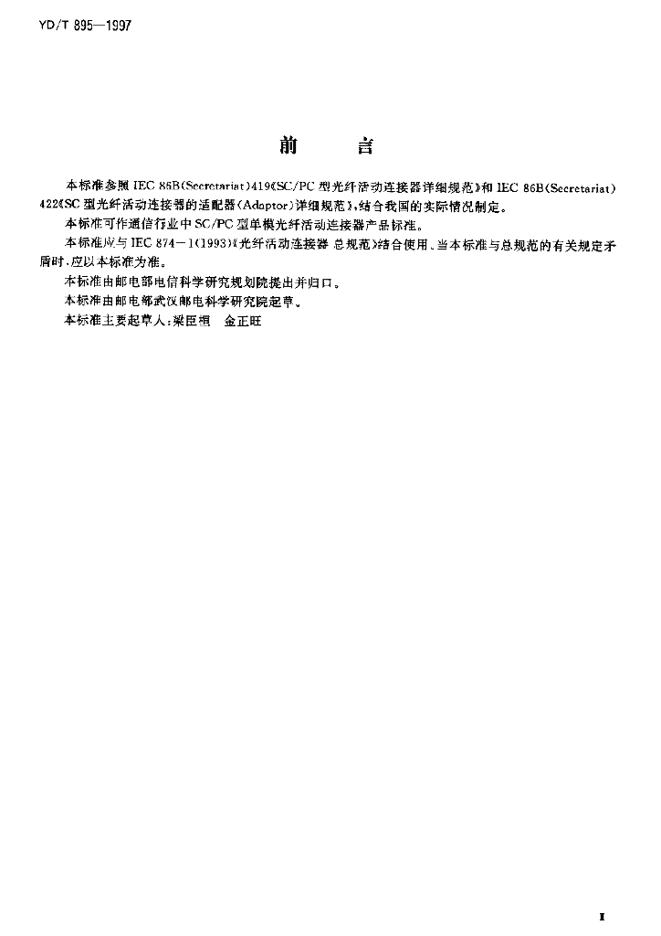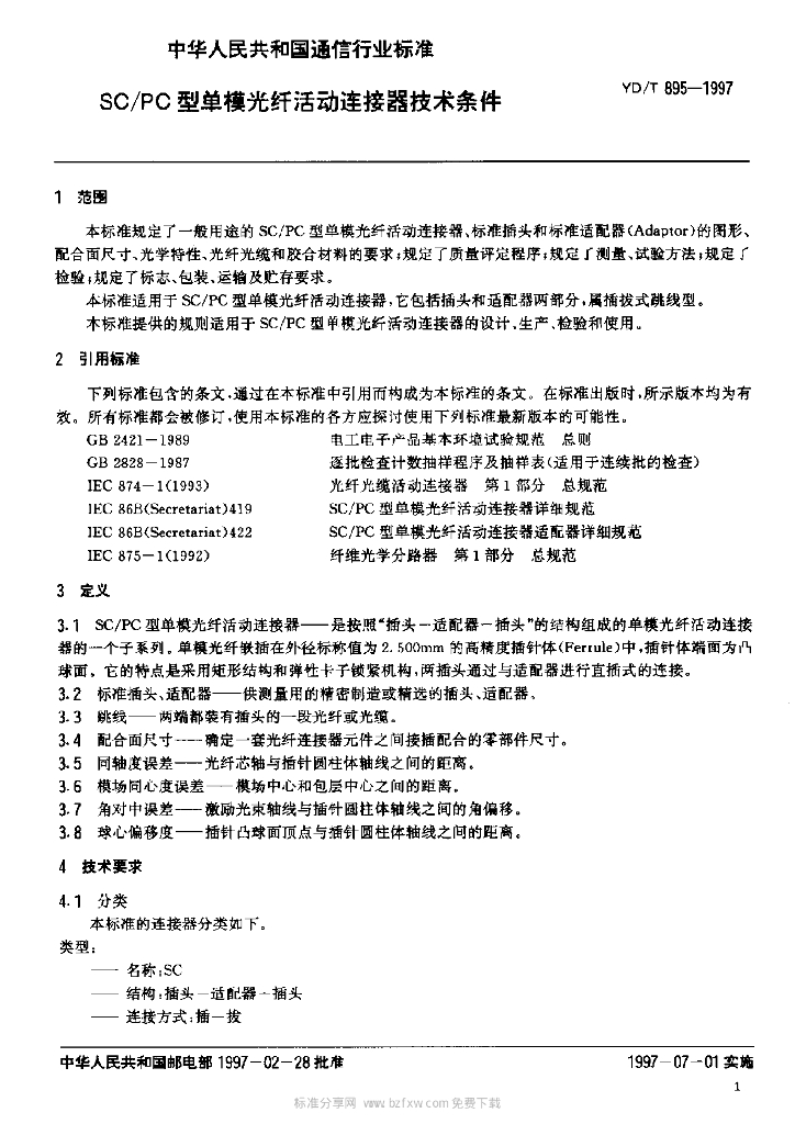 YD/T 895-1997 SC/PC 型单模光纤活动连接器技术条件
