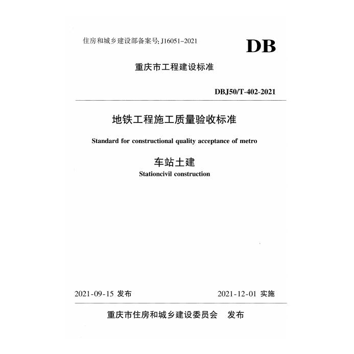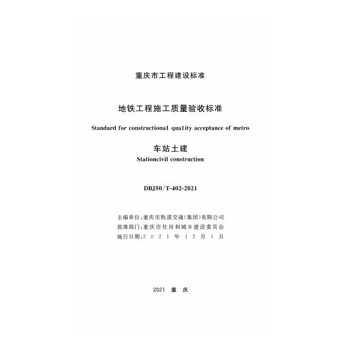 DBJ50/T 402-2021 地铁工程施工质量验收标准 车站土建